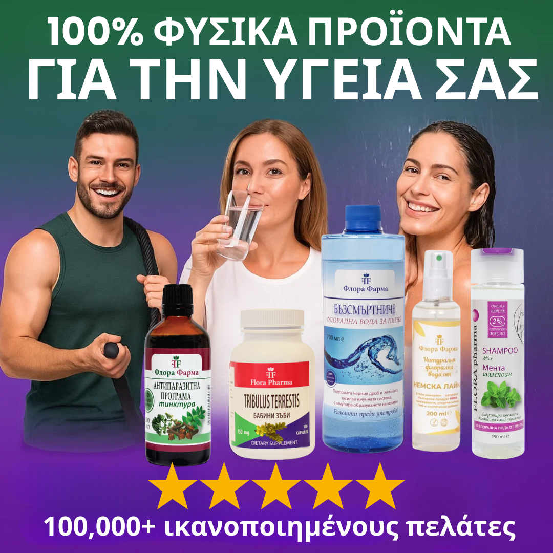 Η Flora Pharma είναι πιστοποιημένη βουλγαρική εταιρεία παραγωγής 100% βάμματα βοτάνων, συμπληρώματα διατροφής, ανθόνερα ,σαμπουάν και τσάγια - χωρίς ΓΤΟ,