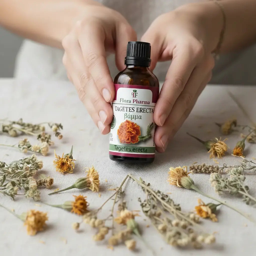 Στη σύνθεσή του περιέχει το αρχαίο βότανο Tagetes erecta (Αφρικανική καλέντουλα)